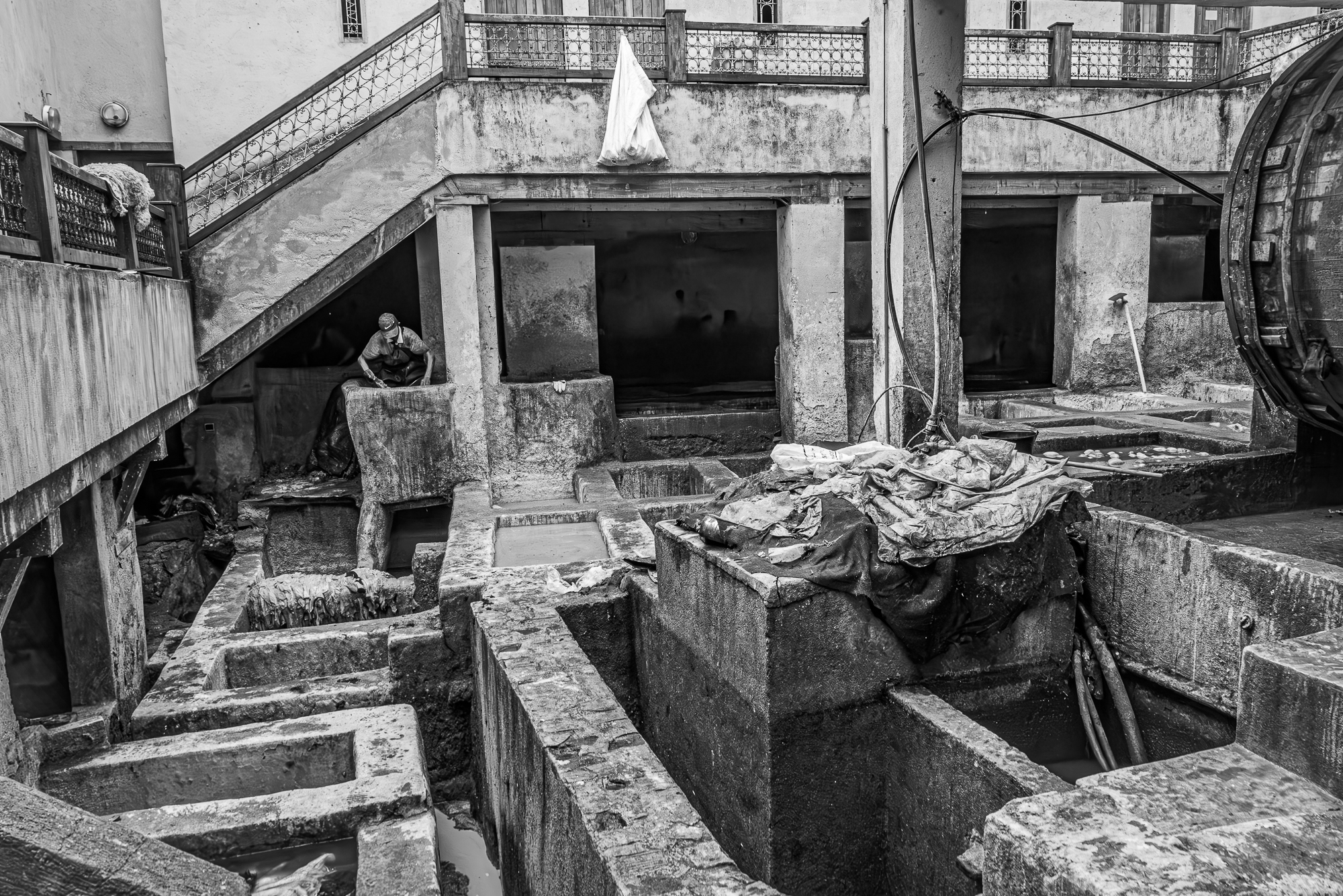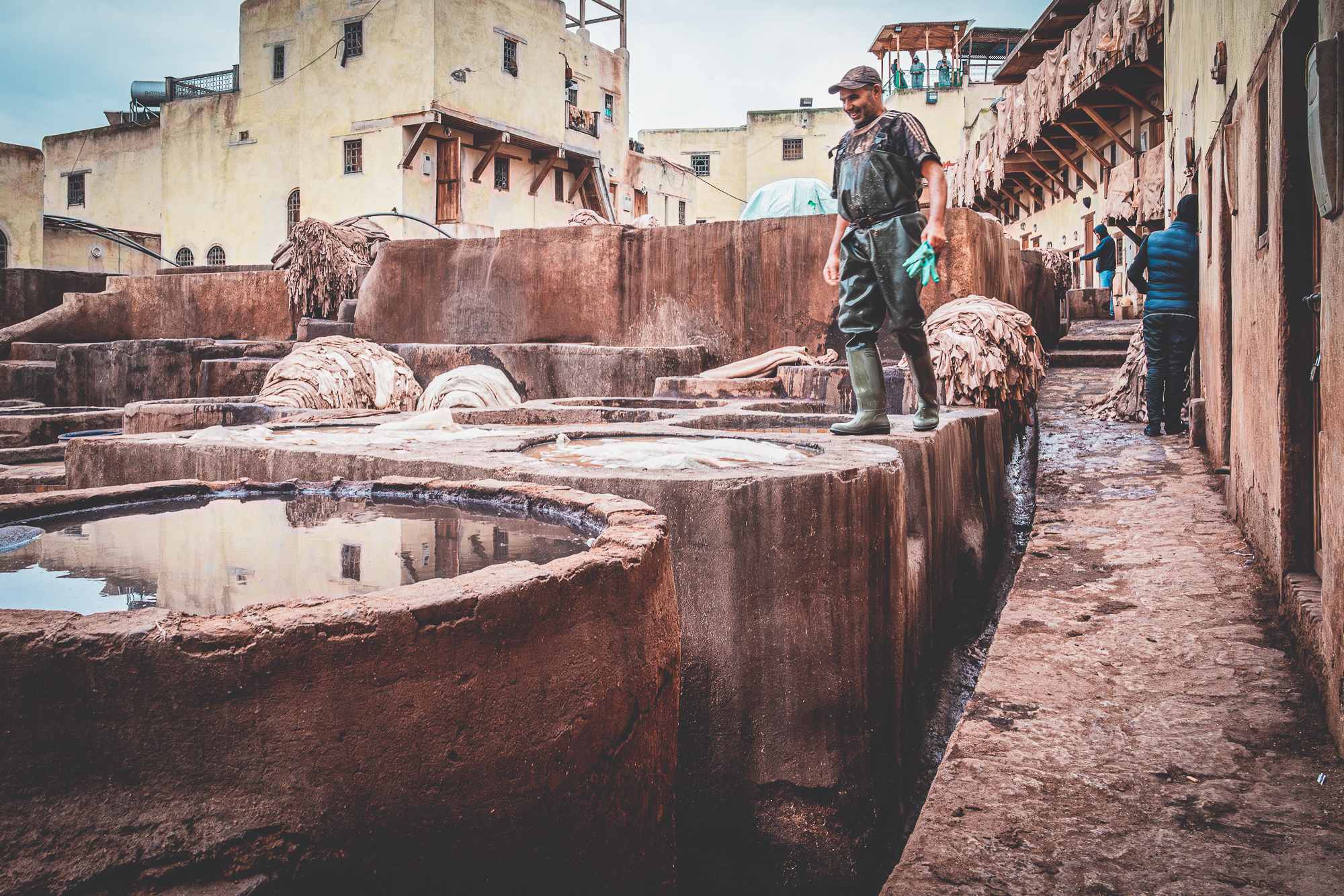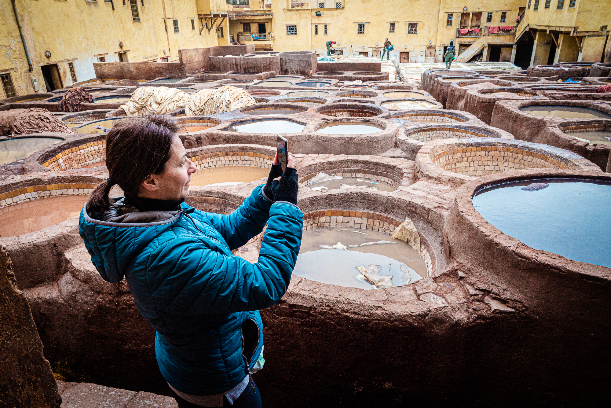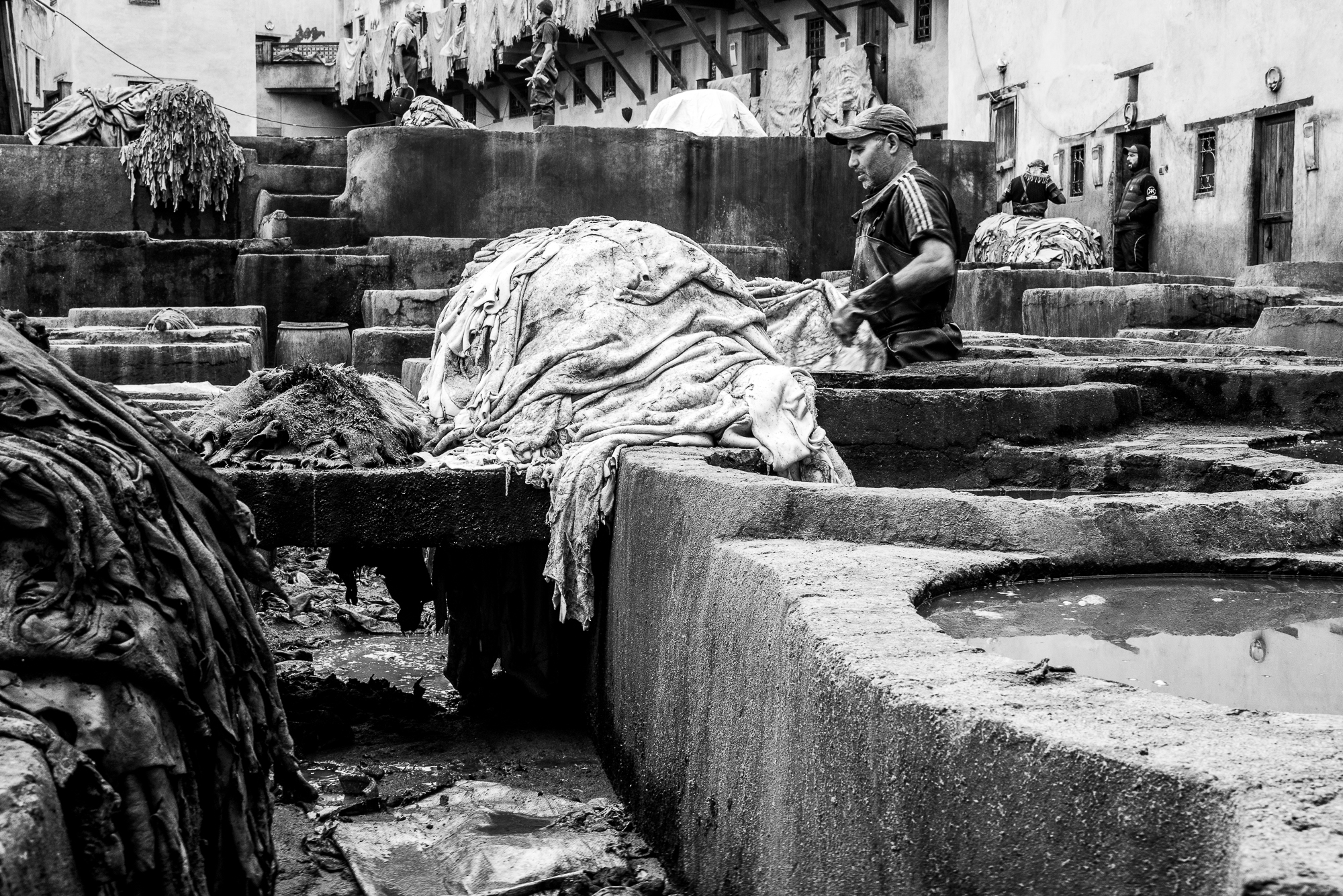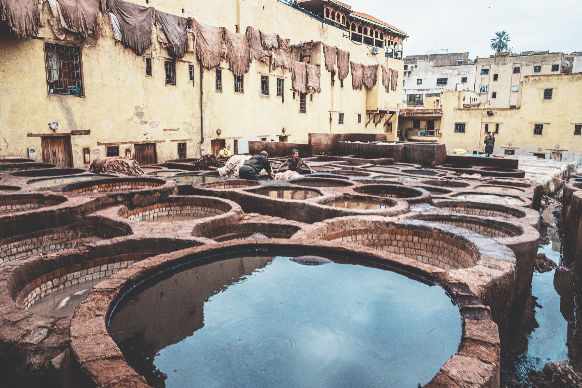 Queste sono alcune delle fotografie scattate nelle più antiche concerie di Fes. Luogo surreale dove le pelli vengono conciate a mani nude da uomini che si immergono nelle vasche. L'odore insopportabile per chi no è del posto... gatti in cerca di cibo... ed i conciatori che ci guardavano con la stessa curiosità con cui li guardavamo noi.